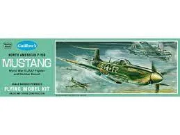 SKU: GUI-905 | Brand: Guillows | Product: Guillow's Mustang Balsa Plane Model Kit The North American P-51D Mustang ranks among World War 2's most versatile single-seat fighter aircraft. Initial U.S.A.A.F. combat units arrived in Britain during November 1943 and subsequently established a distinguished combat record as a long-range fighter escort for B-17 and B-24 bombing missions into German-held territory through war's end. Wing Span: 17" Scale: 1/25 For Ages 14+