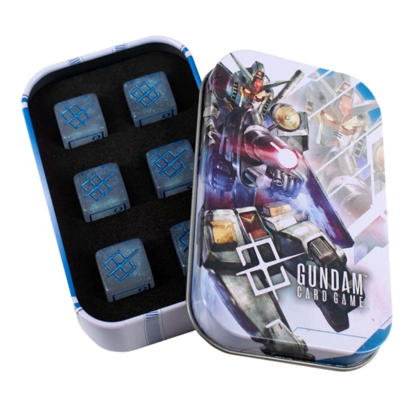 The dice set comes in an exclusive Gundam Card Game steel case.