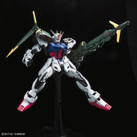 Bandai's Perfect Grade Strike Gundam has been renewed to the very latest format! Features new modeling added to various armor parts, including the head; the internal frame is now gunmetal in color, and the plated parts are chrome - other armor parts are also issued in a different, more intense finish to give the assembled kit a fantastic impression! Yellow LED parts are also included.