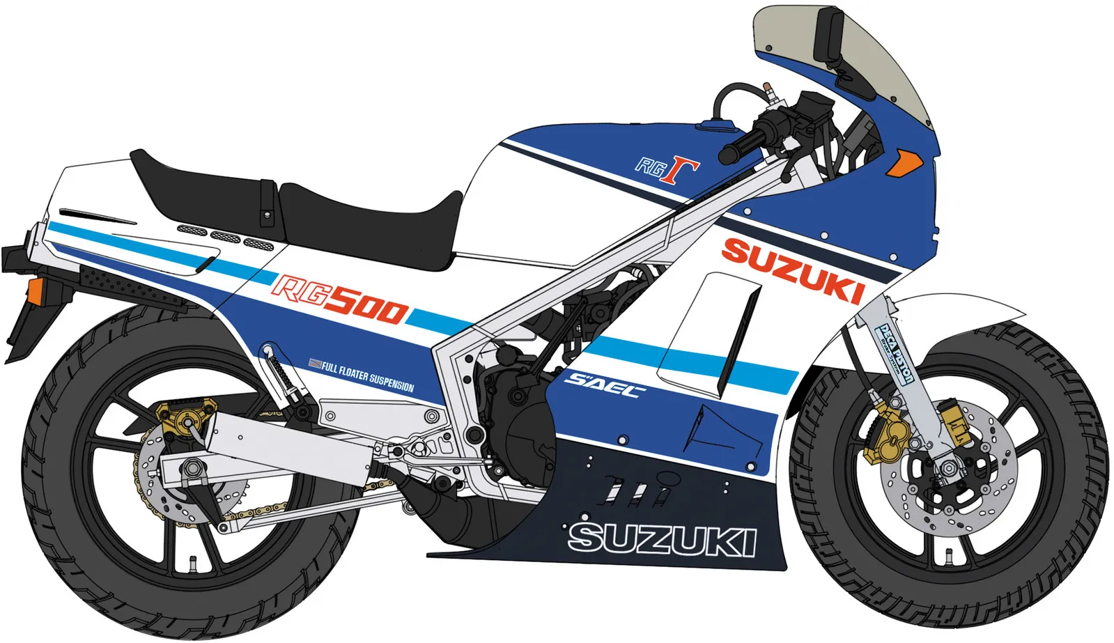 Hasegawa brings us a 1/12-scale model kit of the Suzuki RG500 Gamma early model in blue and white! The special front brake disc part for this bike is included, as are markings for the striking blue-and-white livery.