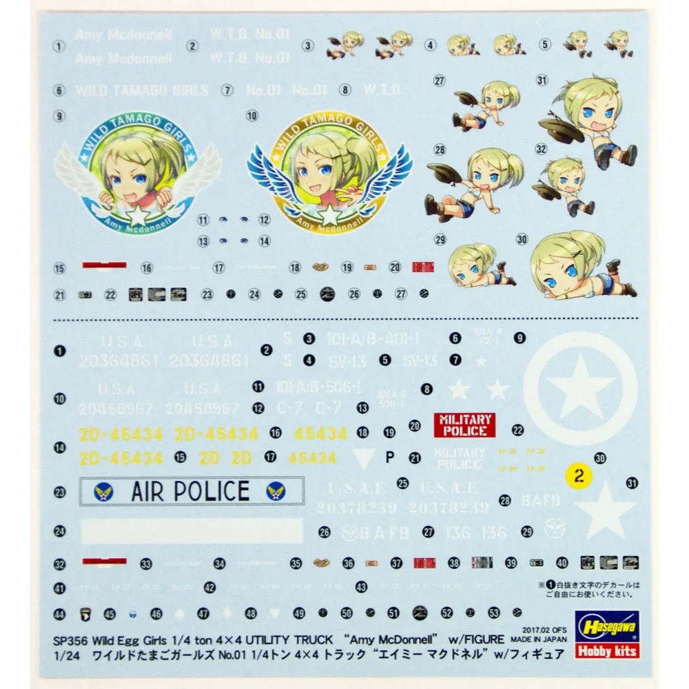 Hasegawa 1/24 Wild Egg Girls 1/4 Ton 4×4 Utility Truck “Amy Mcdonnell” w/Figure Plastic Model Kit