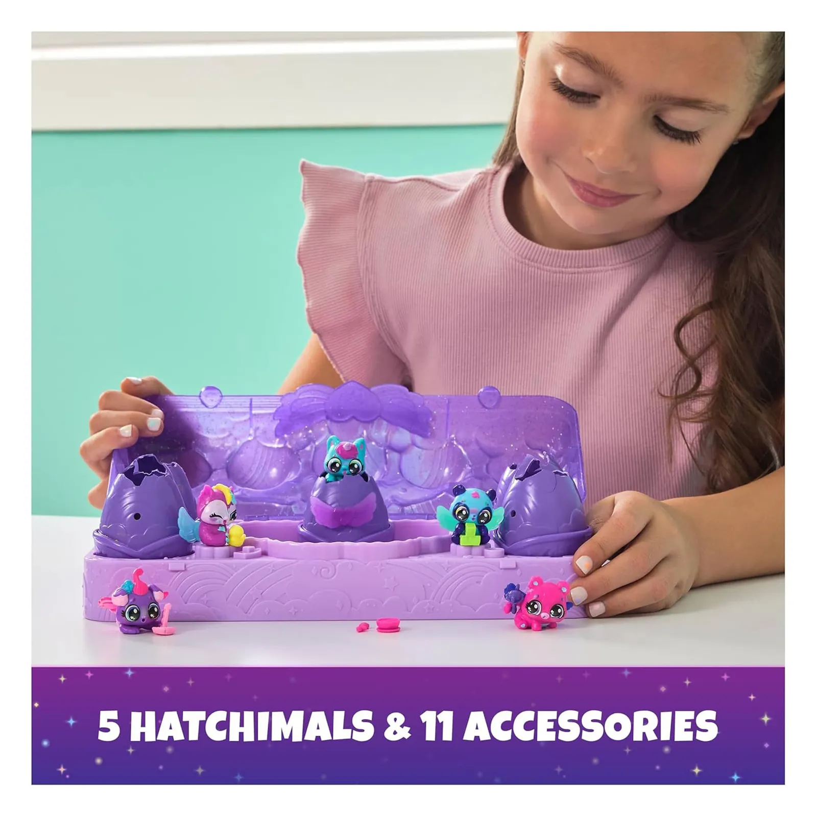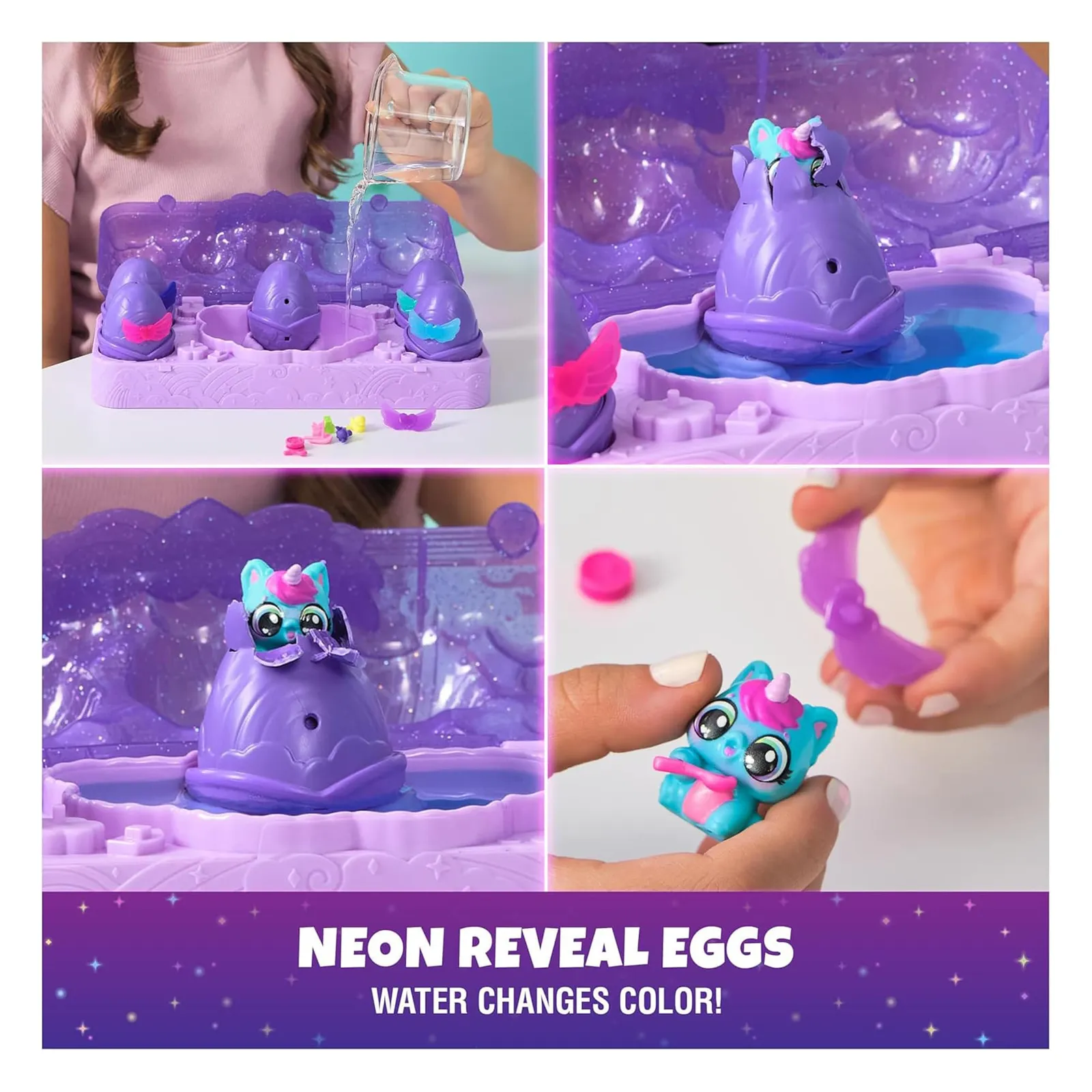 Hatchimals Alive Neon Rainbow – Water Hatch Surprise Playset with 5 Figures & Accessories Bring colour to life with the Hatchimals Alive Neon Rainbow Playset! With a sprinkle of love and a splash of water, watch as five neon-themed eggs hatch before your eyes—each revealing a surprise Hatchimal in stunning Moody Midnight colours. It’s a magical and mess-free hatching experience that kids will love! This vibrant set includes 5 Hatchimals, 5 pairs of wings, and 6 fun accessories for nurturing and pretend play. The reusable carton doubles as a hatch zone, making it easy to hatch your characters again and again. Features: Neon Colour Hatch: Add water and reveal 5 surprise Hatchimals! Each egg hatches to show a character in bold Moody Midnight hues. Built-in Hatching Zone: Place the egg in the carton’s hatch area, add water, and watch the colour change as your new friend hatches! 5 Neon Rainbow Eggs: Each collectible Hatchimal features playful poses and vibrant neon midnight designs. 11 Accessories Included: Comes with 5 attachable wing sets and 6 nurturing accessories like a rattle, spoon, bowl, blocks, rubber duck, and boat for imaginative storytelling. Perfect Gift Idea: A fun and colourful gift for Hatchimals fans—great for birthdays, holidays, or as an Easter basket surprise. Unisex Playset: A magical surprise toy designed for both girls and boys, aged 3 and up. What’s in the Box: 5 Hatchimals CollEGGtibles 1 Neon Rainbow Egg Carton (built-in hatch zone) 5 Pairs of Wings 6 Nurturing Accessories 1 Checklist 1 Instruction Sheet Why Buy the Hatchimals Alive Neon Rainbow Playset? Official Hatchimals Alive product Features a unique water-hatching experience Packed with accessories for creative play Makes a colourful and interactive gift for kids aged 3+ Ready to hatch some fun? Shop the Hatchimals Alive Neon Rainbow Playset today from Online Toys Australia and enjoy fast shipping across the country! Suitable for ages 3 years+