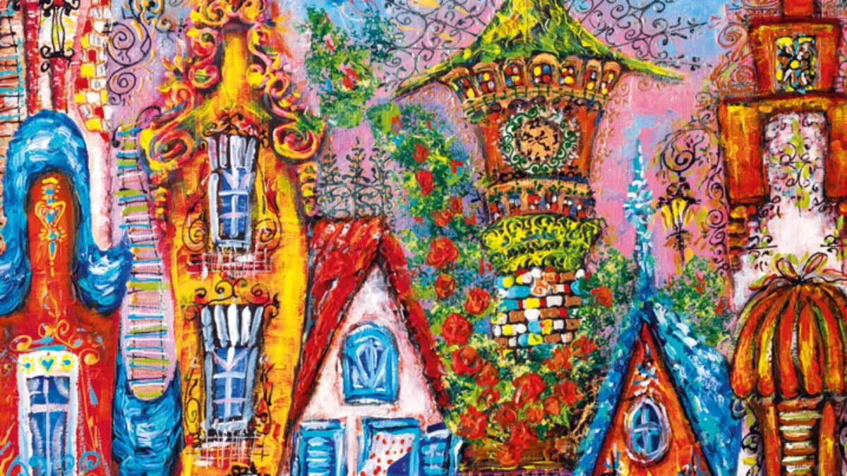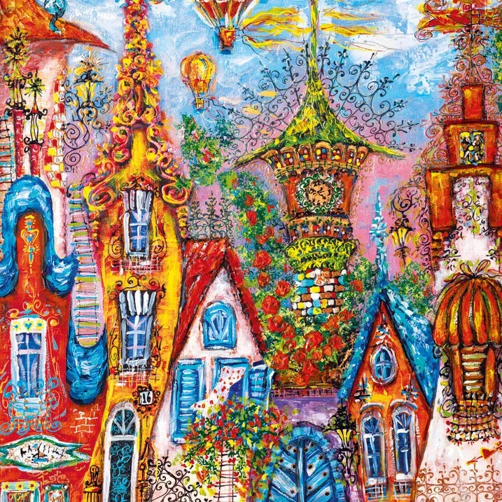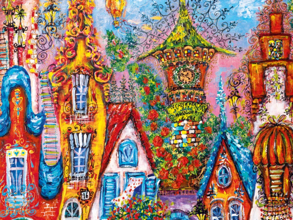 Heye Blue Gate 500 Piece Puzzle, the cityscape already looks so heartwarming & homely from the outside, imagine what lies behind the big blue gate