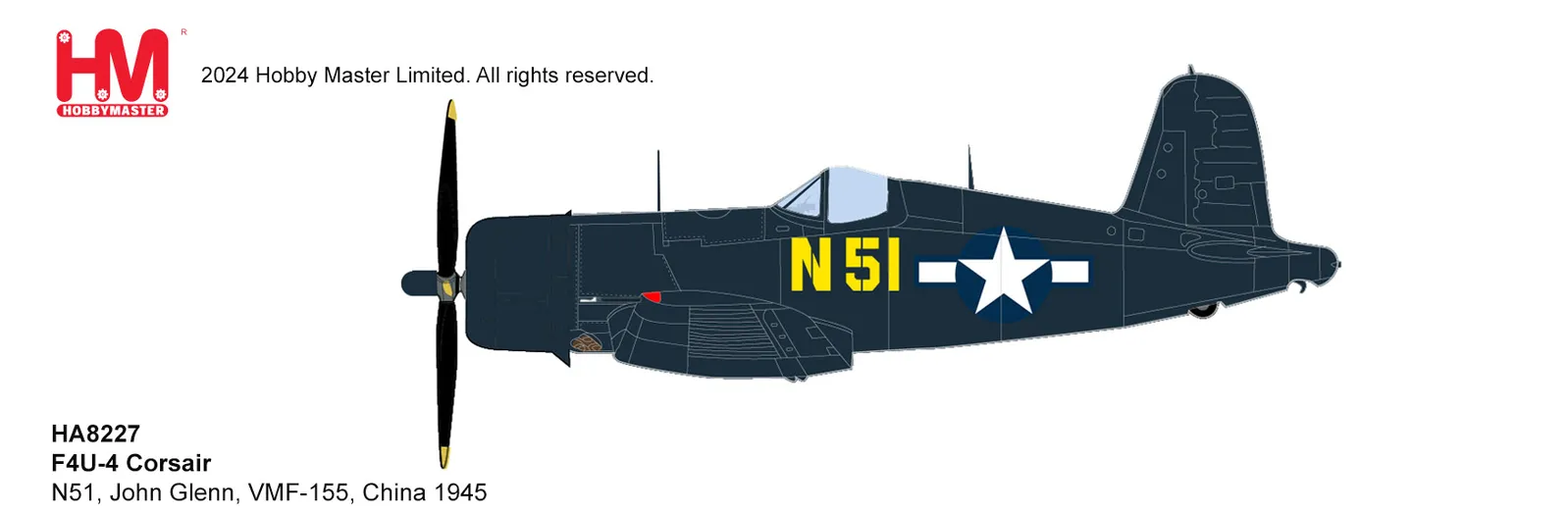 Hobby Master 1/48 F4U-4 Corsair N51 John Glenn VMF-155 China 1945 Diecast Model Aircraft