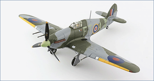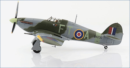 The Hawker Hurricane was the first British single-engine fighter and the first single wing aircraft with retractable landing gear as well as an enclosed cockpit and 8 machine guns. The Hurricane went into operational service in December 1937 with the RAF 111 Squadron. The Hurricane is usually over looked as a major player in the BoB because of the Spitfire but 80% of the 1,792 German aircraft shot down were because of the Hurricane. There were 14,533 Hurricanes produced in all variants.