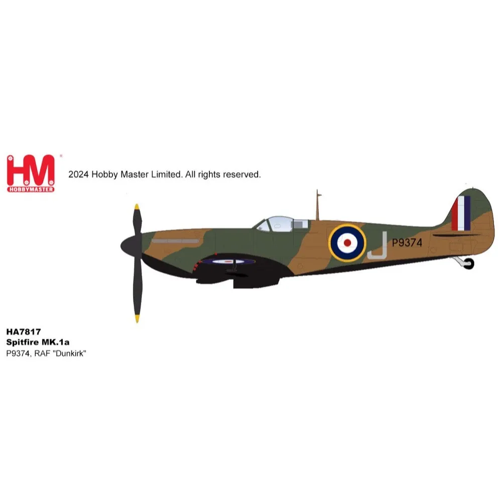 Hobby Master 1/48 Spitfire MK.1a "Dunkirk" J/P9374, RAF Diecast Model Aircraft