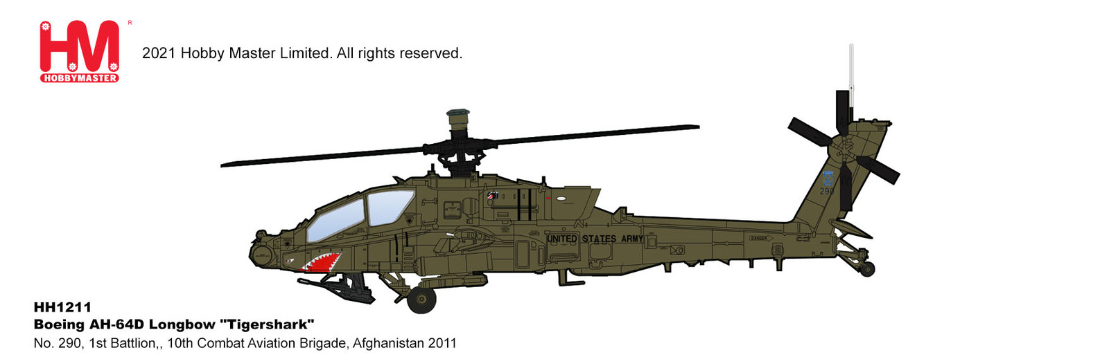 Hobby Master 1/72 Boeing AH-64D Longbow "Tigershark" No. 290, 1st Battlion,, 10th Combat Aviation Brigade, Afghanistan 2011 Diecast Airplane