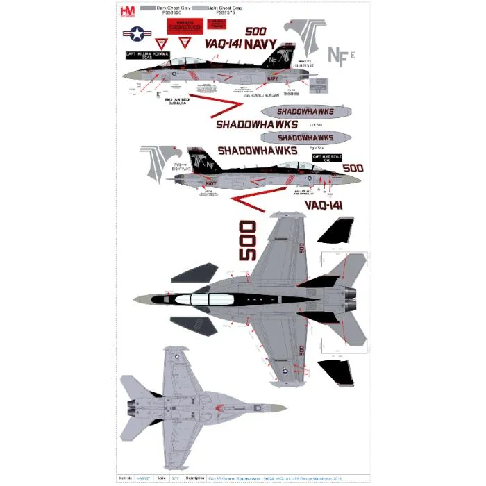 Hobby Master 1/72  EA-18G Growler "Shadowhawks" 166928 VAQ-141 USS George Washington 2013 Diecast Model Aircraft