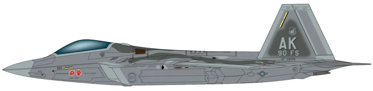Hobby Master 1/72 F-22 "90th FS 100th Anniv. Scheme" 09-4190, 90th FS, Elmendorf AB, 2017 Diecast Model Aircraft