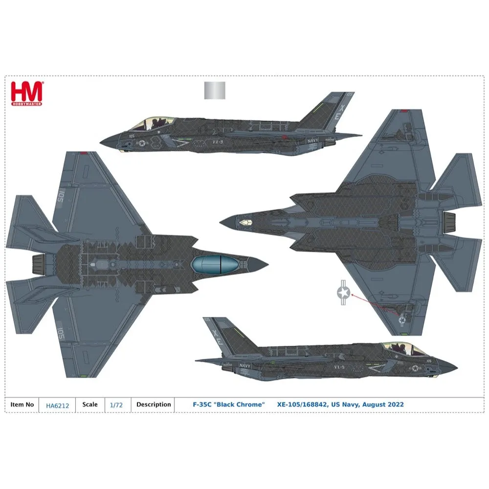 Hobby Master 1/72 F-35C "Black Chrome" XE-105/168842, US Navy, August 2022 Diecast Model Aircraft