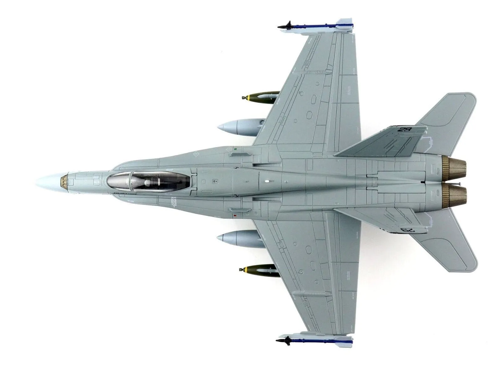SKU: HA3573 | Brand: Hobby Master | Product: Hobby Master 1/72 F/A-18A Hornet "Top Hat" A21-29, 75 Sqn., RAAF, 1990 Die-Cast Aircraft The F/A-18 Hornet operates as a supersonic twin-engine all-weather fighter and attack platform. Initial flight occurred in November 1978 with production commencing April 12, 1980. The first 380 airframes were F/A-18As before production transitioned to F/A-18C variants in September 1987. Single-seat (A/C) and tandem-seat (B/D) configurations account for 1,480 total A-D variant aircraft. The type operates from both carriers and ground bases with in-flight refueling capability. RAAF airframe A21-29 was accepted in April 1988. During May 1990 deployment to Clark Air Base in the Philippines, a Top Hat and Cane insignia was applied to the tail identifying the aircraft as the Commanding Officer's personal mount. On August 2, 1990, A21-29 and A21-42 departed RAAF Tindal for training intercepts; during aggressive maneuvering A21-42 lost visual contact and collided with A21-29, which successfully returned to base. The diecast model features professional paint application, precise detailing, and pad-applied markings. ---