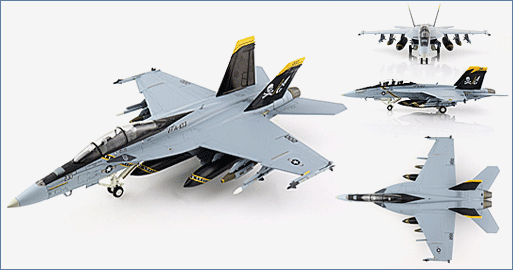 The McDonnell Douglas Boeing F/A-18E Super Hornet is a twin-engine multi-role carrier-based aircraft. The “E” variant is single-seater while the “F” variant is a tandem-seat configuration. The “E” is a much larger, more advanced and more capable variant of the F/A-18C. The Super variant can carry a larger array of weapons as well as more of them and is capable of returning to the carrier while still carrying unspent munitions, a big savings in dollars. The first F/A-18E flight was in 1995 and began delivery to the USN in 1999.