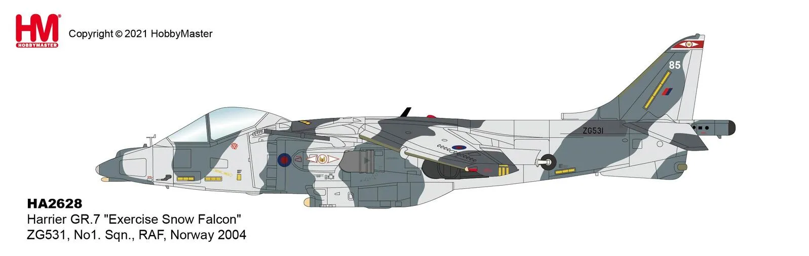Hobby Master 1/72 Harrier GR.7 "Exercise Snow Falcon" ZG531, No1. Sqn., RAF, Norway 2004 Diecast Airplane