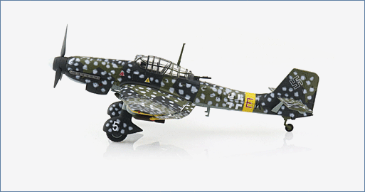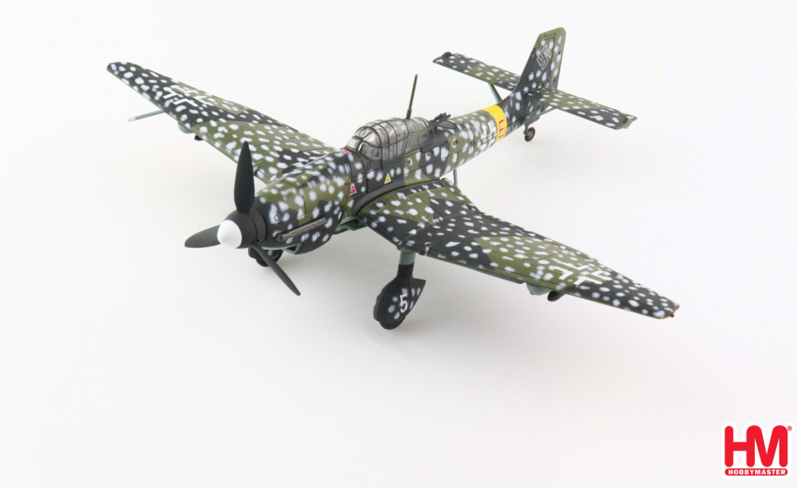 In 1940, the Ju 87 D (the “Dora” series), with a more powerful engine Jumo 122F, was developed for the attack of heavily defended targets. In 1943, with the approaching invasion of Russia, the Ju87 G “Gustav” was developed for anti-tank purpose. It was fitted with two 37mm cannons under the main wing and the number 1 ace of it was the legendary Oberst (Colonel) Hans Ulrich Rudel who had achieved over 500 kills of Russian armor include one battle ship destruction.