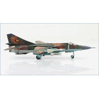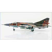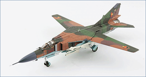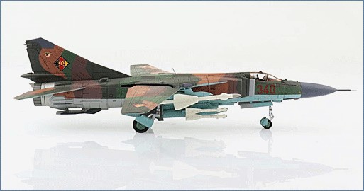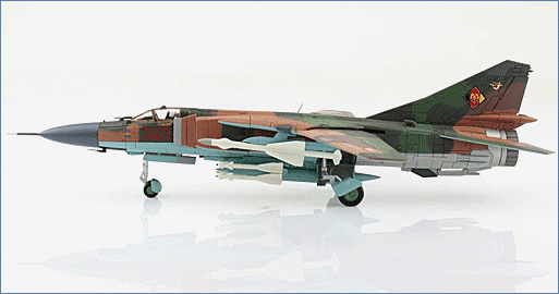 In the 1960’s the Soviet military required a replacement for the MiG-21 that could compete with the USAF F-14 Tomcat. It had to be very fast, rapid acceleration, carry a larger payload, capable of a high service ceiling, long range and beyond visual range intercept capabilities. The project was given to the Mikoyan- Gurevich Design Bureau that produced the Model 23-11 that first flew on June 10, 1967. Production began in 1969 and eventually completed over 5,000 swing-wing MiG-23s. A ground-attack variant was also produced, the MiG-27.