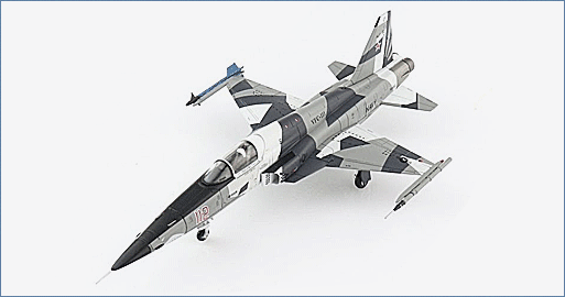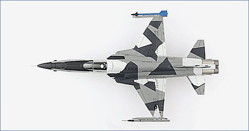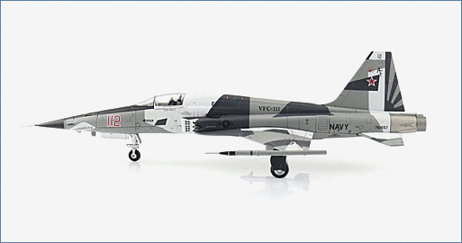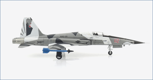 In 1976 an F-5E s/n 76-1557 was constructed and spent time with the Swiss Air Force as J-3032. When the Swiss Air Force began to retire their F-5s, the U.S. decided to acquired 32 low-hour “E” variants that would equip Aggressor Squadrons. These F-5Es were upgraded to “N” specifications and added new aircraft to VFC-111 “Sun Downers”. VFC-111 is part of the USN Reserve’s fleet adversary program and provides air combat training to the USN and USMC. F-5N 761557 was delivered to VFC-111 in 2004 and is still flying wearing a 3-tone grey scheme.