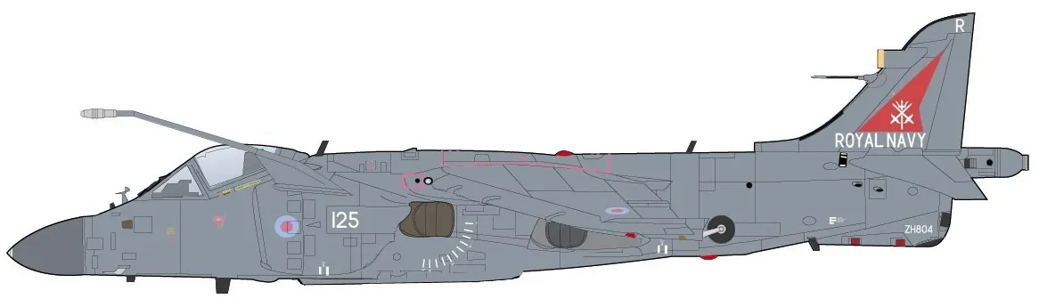 SKU: HA4107 | Brand: Hobby Master | Product: Hobby Master 1/72 Sea Harrier FA.2 ZH804, Royal Navy, Fairford 2002 (w/Sea Eagle missiles) Diecast Model Aircraft This 1/72 scale diecast model represents Sea Harrier FA.2 aircraft ZH804 as it appeared at the Royal International Air Tattoo at Fairford in 2002. The FA.2 variant incorporated improved radar systems and expanded weapons capability compared to earlier Sea Harrier versions. The model includes Sea Eagle anti-ship missiles mounted on the airframe, reflecting the aircraft's maritime strike role with the Royal Navy. The Sea Harrier's vertical take-off and landing (VTOL) capability is evident in the aircraft's distinctive engine and intake configuration. Hobby Master's detailing captures the aerodynamic features specific to this naval variant.