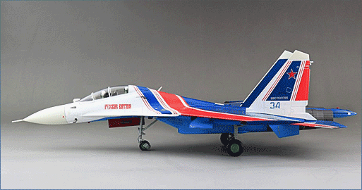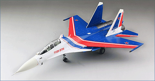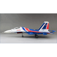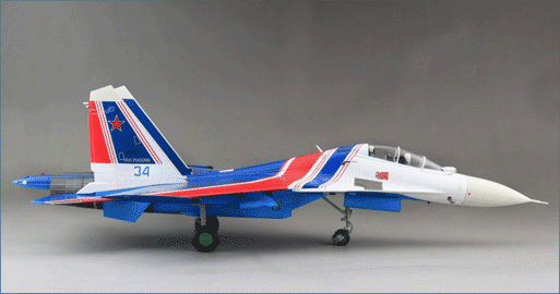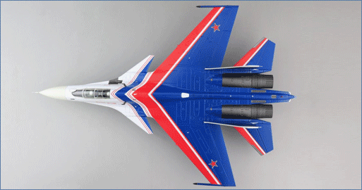 Russian Air Force Aerobatic Team “Russian Knights” was formed in 1991 using aircraft and crews from the 237th Guards Proskurov Aircraft Demonstration Center at Kubinka, AB. They were originally equipped with 6 Su-27s but since 2016 have used 8 Su-30SM numbered from 30 through 37. The Russian flag appeared on the fins for the first year before being replaced with blue fins with stars. On November 7, 2019, a ceremony was held at Kubinka AB to introduce four multi-purpose single seat Su-35S’ that will replace the Su-30SMs.