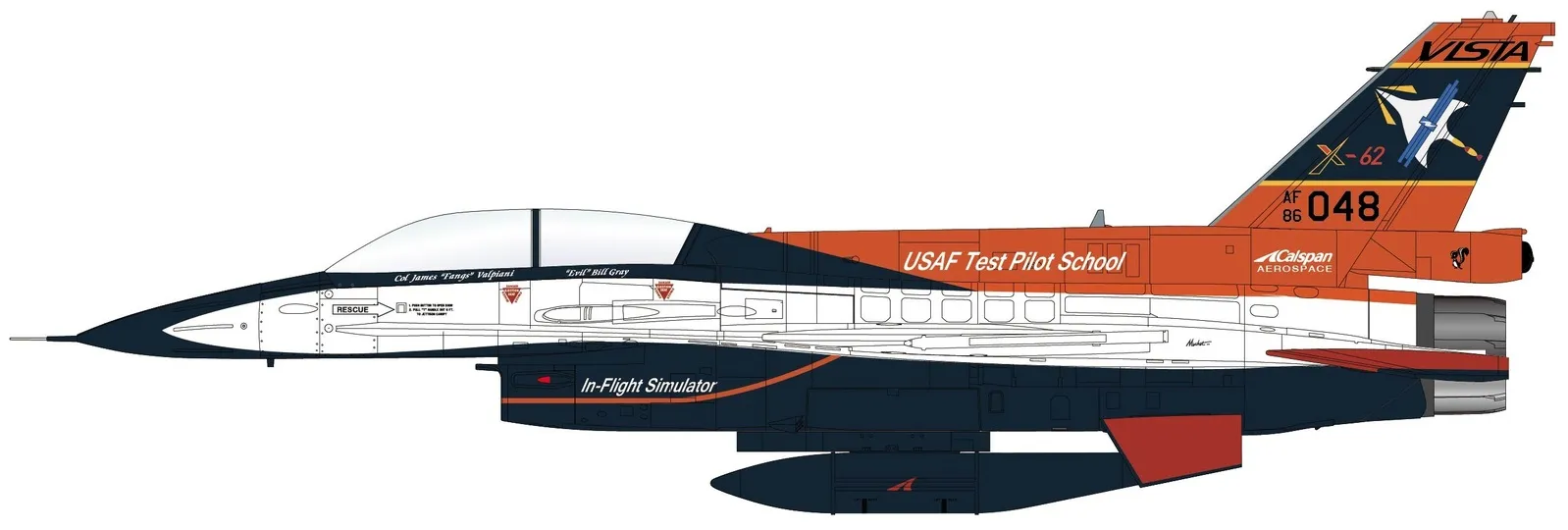 Hobby Master 1/72 X-62A VISTA 86-0048, USAF Test Pilot School, Edwards AFB, May 2, 2024, (w/2 x ACMI pod + 1 center fuel tank) Diecast Model Aircraft