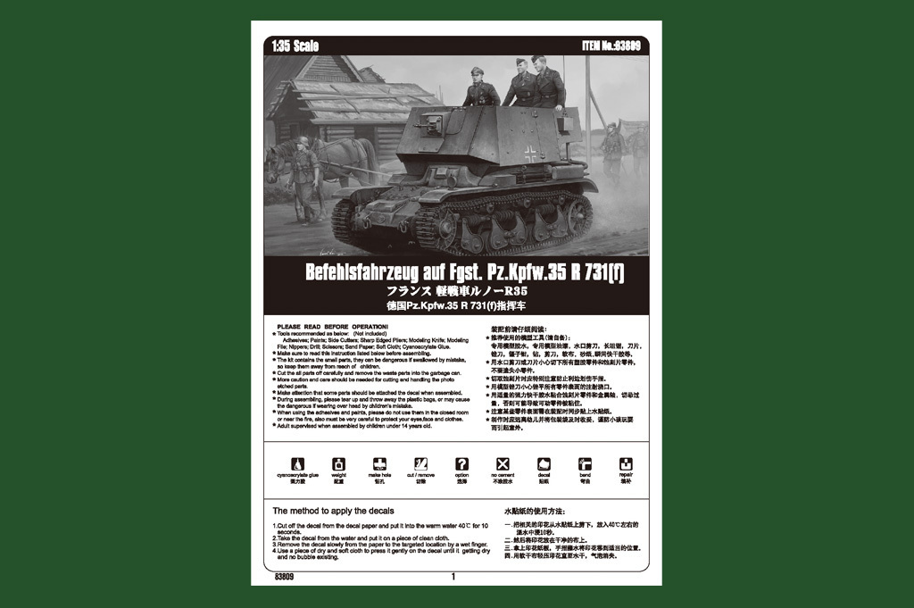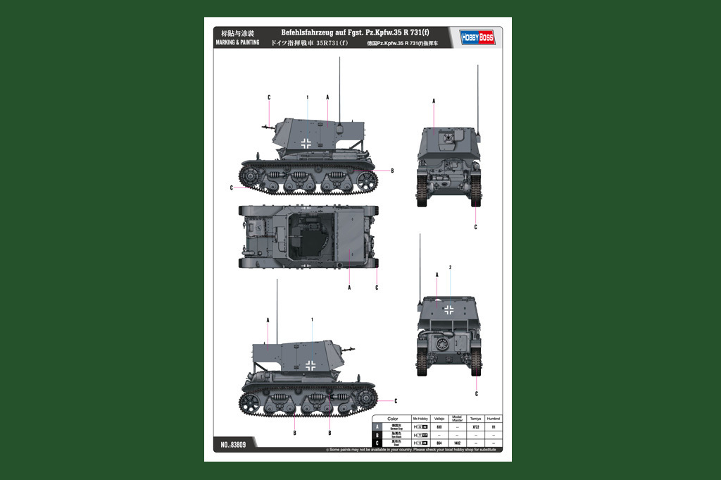 HobbyBoss 1/35 Befehlsfar zeug auf Fgst. Pz.Kpfw.35 R 73 83809 Plastic Model Kit