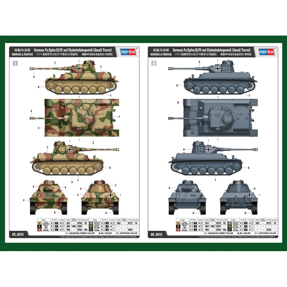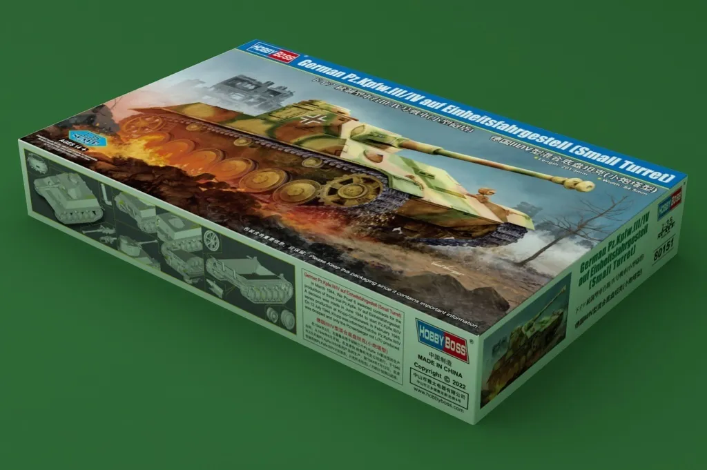 1/35 German Pz.Kpfw.III/IV auf Einheitsfahrgestell (Small Turret) Model Kit by HobbyBoss delivers a detailed and immersive build experience for military model enthusiasts and collectors.