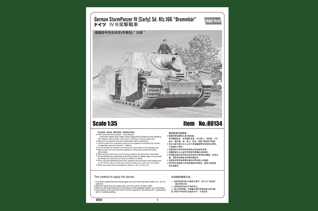 HobbyBoss 1/35 German SturmPanzer IV early Sd. Kfz.166 "Brummbar" Plastic Model Kit [80134]