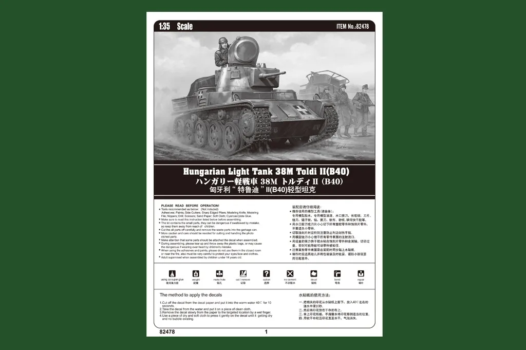 Short DescriptionHobby Boss 1/35 Hungarian Light Tank 38M Toldi II (B40) # 82478