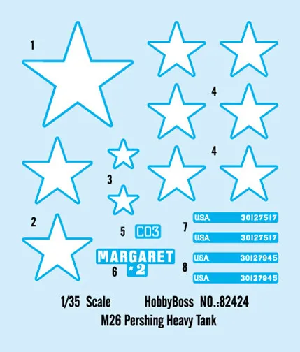 Parament Item No 82424 Item Name M26 Pershing Heavy Tank Bar Code 6939319224248 Scale 1:35 Item Type Static kit Model Dimension Length: 241.29mm Width: 100.9mm Height: 90.45mm Total Plastic Parts 319pcs Total Sprues 10 sprues plus lower hull, upper hull, turret Chromeplate Parts n/a Camouflage Scheme U.S.