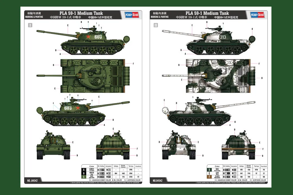 HobbyBoss 1/35 PLA 59-1 Medium Tank Plastic Model Kit [84542]