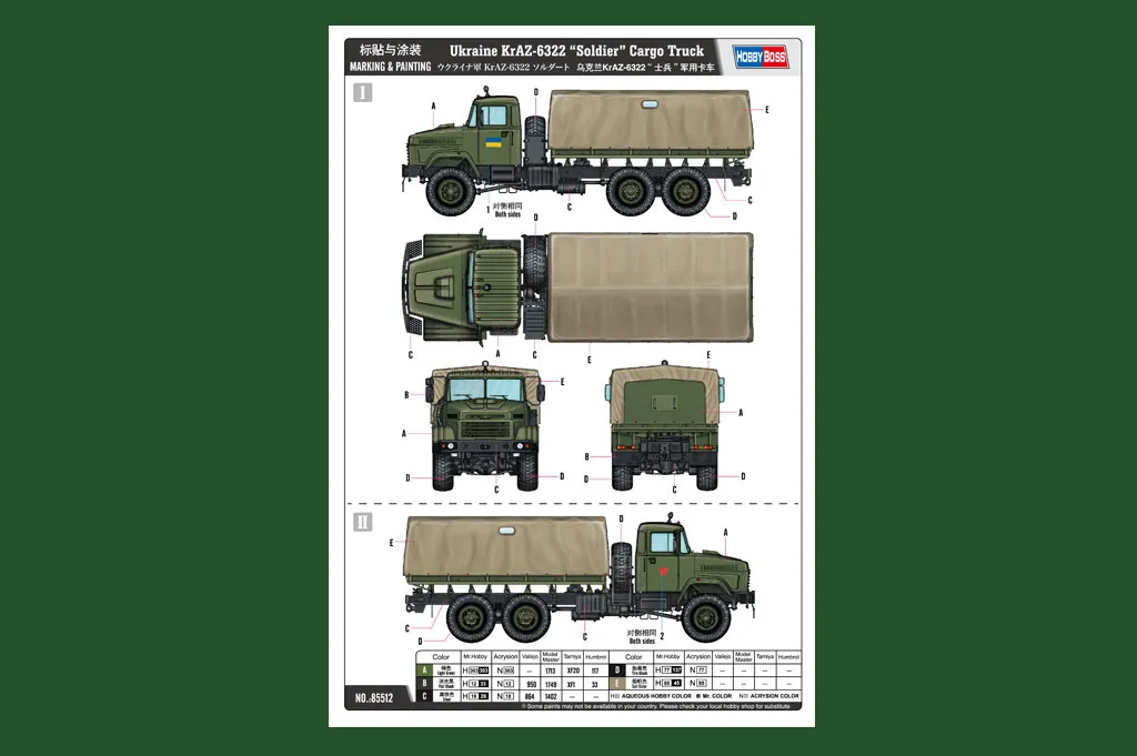 Short DescriptionHobbyboss 1/35 Ukraine KrAZ-6322 Soldier Cargo Truck # 85512
