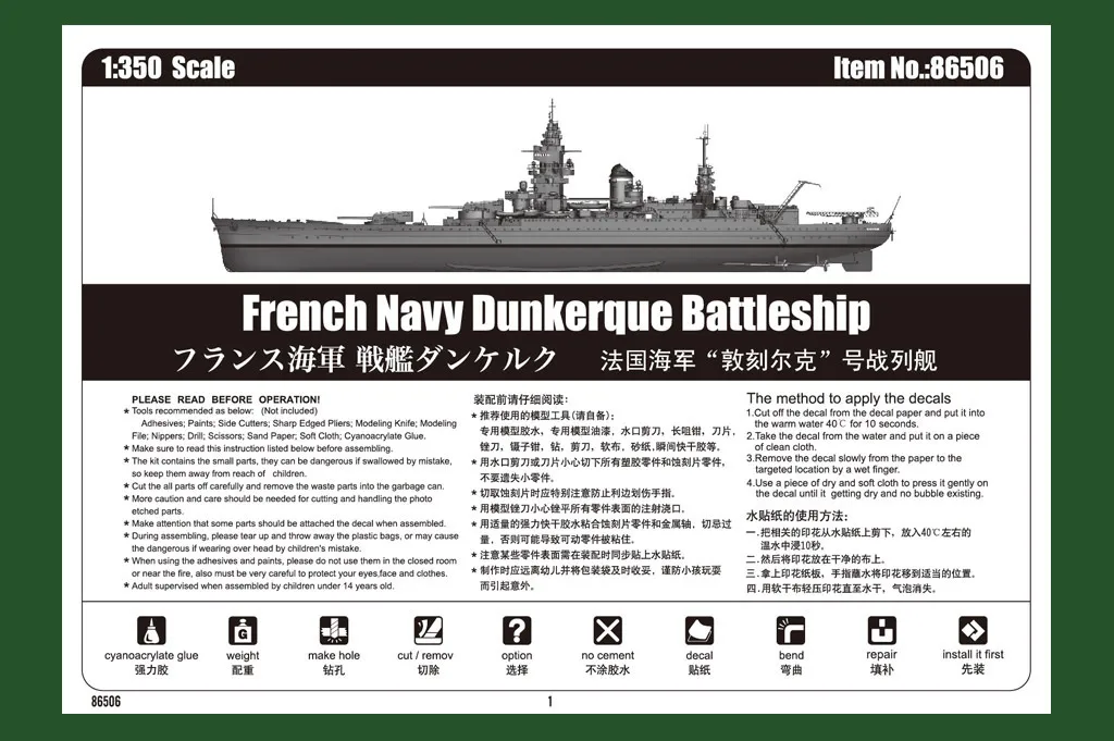 Finished Model Dimensions (Approximate): Length: 50.5 cm Width: 8.5 cm Height: 16.Why this kit matters The French Navy’s Dunkerque battleship was one of the most prominent warships in the interwar period.