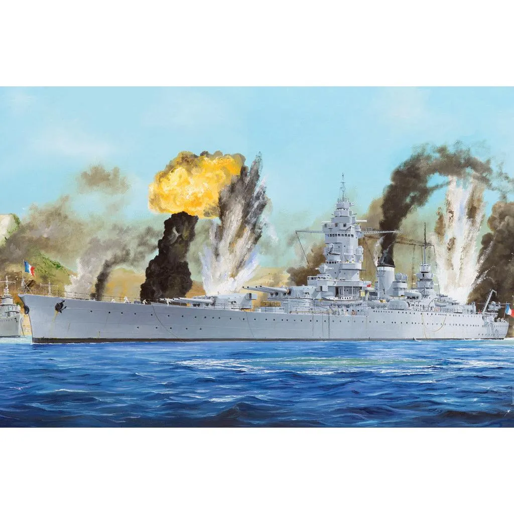 1/350 French Navy Dunkerque Battleship Plastic Model Kit by HobbyBoss delivers a detailed and historically accurate model of the iconic French battleship, ideal for naval enthusiasts and collectors.