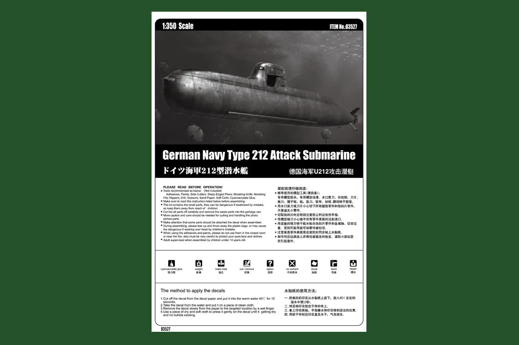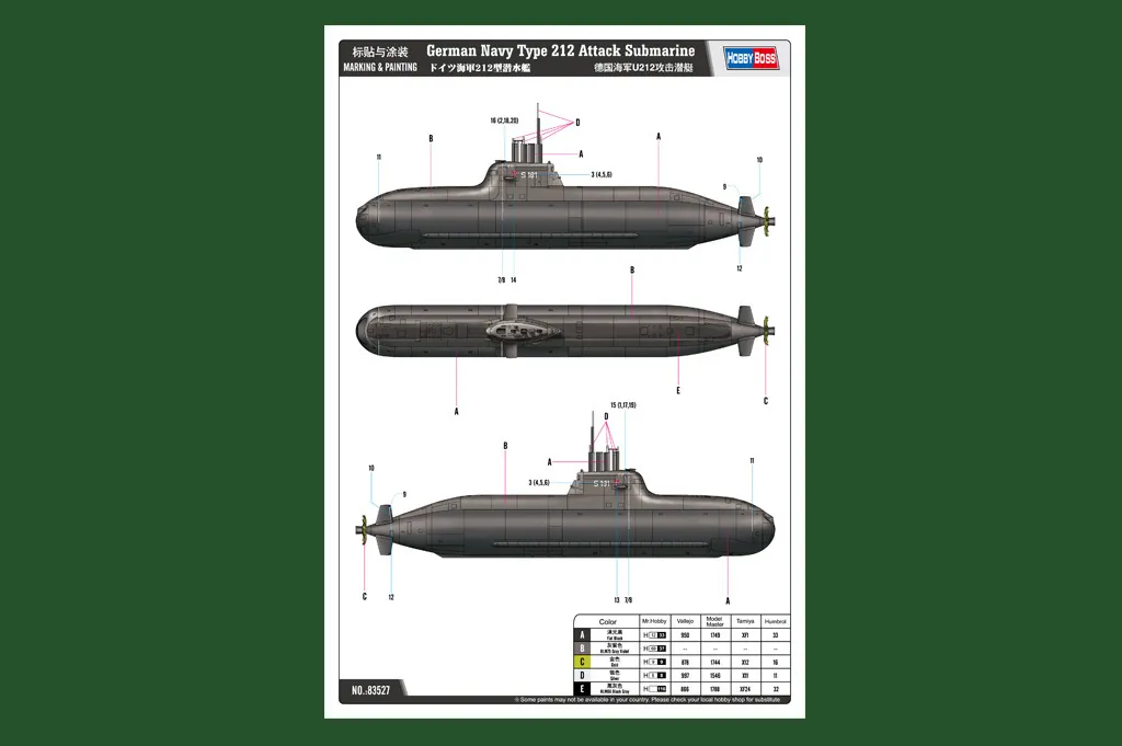 HobbyBoss 1/350 German Navy Type 212 Attack Submarine Plastic Model Kit [83527]