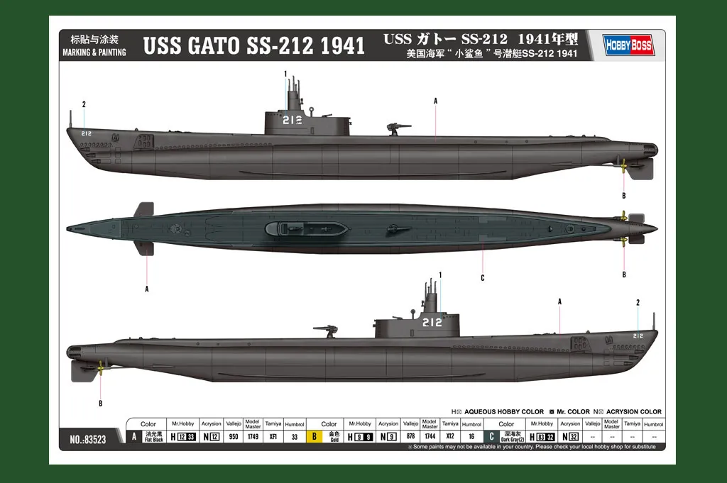 Short DescriptionHobbyboss 1/350 USS Gato SS-212 1941 # 83523