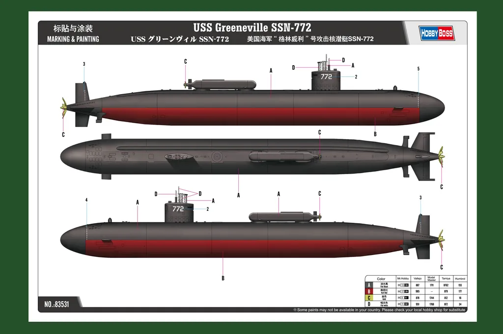 Short DescriptionHobby Boss 1/350 USS Greeneville SSN-772 # 83531