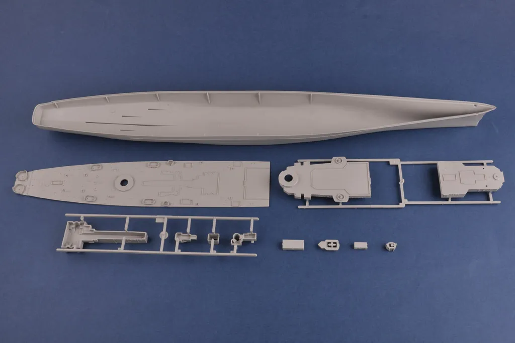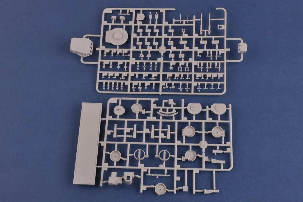 | Total Sprues | 17 sprues , hull , decks and stand |