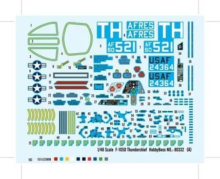 Parament Item No 80332 Item Name F-105D Thunderchief Bar Code 6939319203328 Scale 1/48 Item Type Static Aircraft Model Dimension Length: 430.3mm Width: 223.3mm Height: mm Total Plastic Parts 252pcs Total Sprues 9 sprues Camouflage Scheme ?F-105D 60-480 36th TFW 23rd TFS 1965. ? F-105D(61-132) 334th TFS, 4th TFW Released Date 2008-04 More Features The kit consists of 237 parts in light grey plastic, 15 clear parts for canopy, simple engine detail