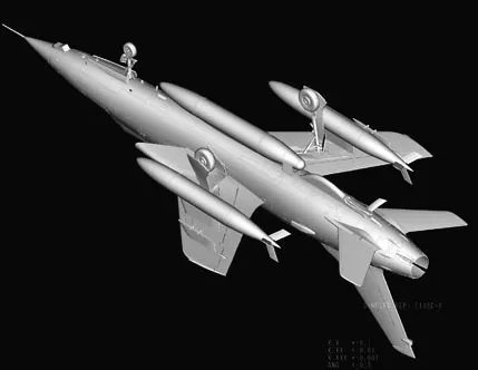The F-105 armed with missiles and a cannon; however, its design was tailored to high-speed low-altitude penetration carrying a single nuclear bomb internally.