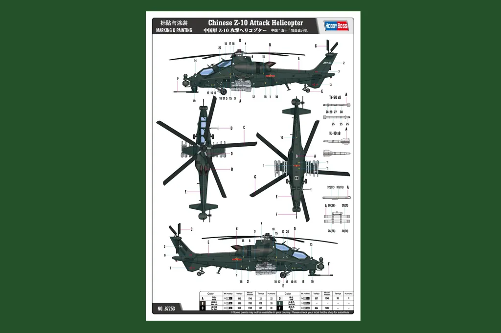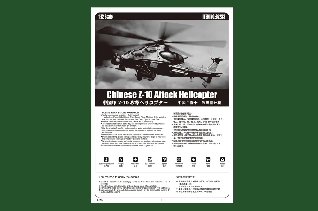 Short DescriptionHobby Boss 1/72 Z-10 Chinese Helicopter # 87253