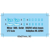 Parament Item No 82904 Item Name Morser KARL- Geraet 040/041 initial chassis Bar Code 6939319229045 Scale 1:72 Item Type Static kit Model Dimension Length: 159mm Width: 56.6mm Height:67.3mm Total Plastic Parts 196 pcs Total Sprues 7pcs+tracks Camouflage Scheme n/a Released Date n/a More Features n/a