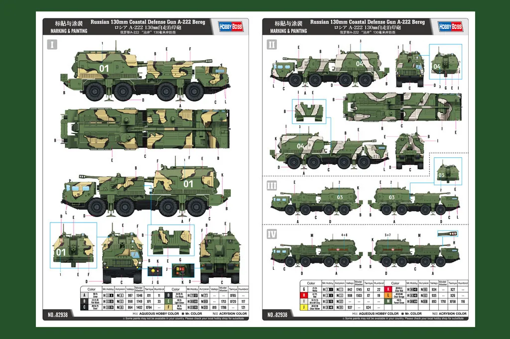Item No: 82938 Item Name: Russian 130mm Coastal Defense Gun A-222 Bereg Bar Code: 6939319229380 Scale: 1:72 Item Type:  Plastic Model Armor Kit Model Dimension: Length: 225mm   Width: 72mm Total Plastic Parts: 110+ Total Sprues: 5 sprues , frame , cab and tires Chromeplate Parts :              n/a Resin Parts              n/a Metal Parts             n/a Photo Etched Parts              n/a Film Accessory       n/a Released Date        2021-09 More Features       The kit consists of over 110 parts -Newly tooled parts in accurate detail -Rubber tires