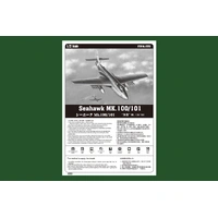 Item No 87252 Item Name Seahawk MK.100/101 Bar Code 6939319272522 Scale 1:72 Item Type Static kit Model Dimension Length:173.5 mm Wingspan: 163.8mm Total Plastic Parts 70+pcs Total Sprues 5 sprues Chromeplate Parts n/a Camouflage Scheme Seahawk MK.100/101 Resin Parts n/a Metal Parts n/a Photo Etched Parts n/a Film Accessory n/a Released Date 2011-08 More Features The kit consists of over 70 parts , includes 3 clear parts