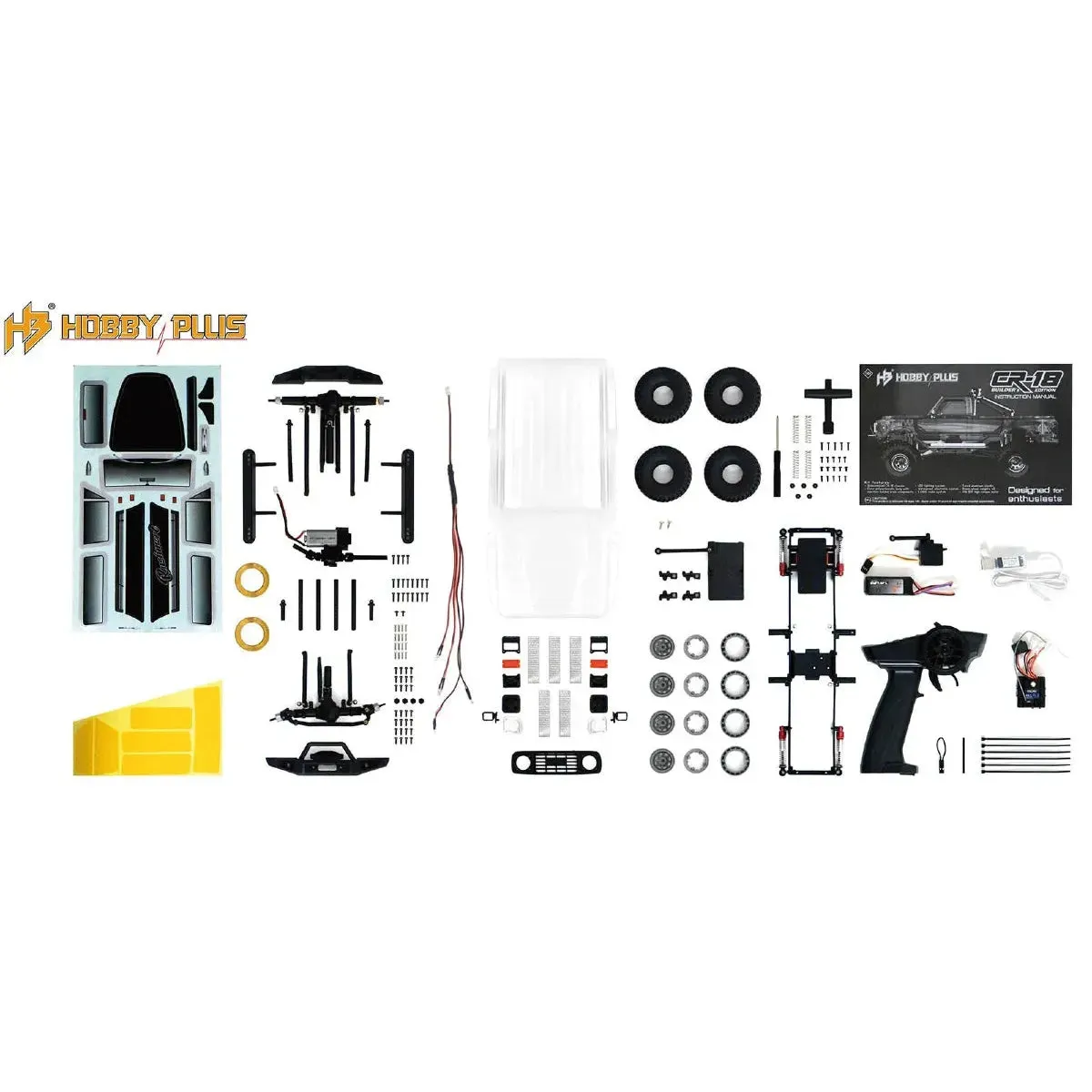 1/18 CR18 Rushmore Builders Edition delivers ultimate customization and micro-crawling fun for RC enthusiasts and scale model builders! Featuring: Builders Edition: Designed for customization and personalization. 1/18 Scale: Perfect for indoor crawling and tight spaces. 4-Wheel Drive System: Provides excellent traction and control. Durable Construction: Built to withstand rough terrain. Model Dimensions (Approximate): Length: 230 mm Width: 115 mm Height: 120 mm Wheelbase: 140 mm Technical Specifications: Scale: 1/18 Brand: Hobby Plus Motor Type: Brushed Battery (vehicle): Includes 7.4V LiPo battery Transmitter batteries: Requires 4 x AA batteries not included Drive / Propulsion: 4WD Assembly: Ready-to-run Controller: 2.4GHz Material: Plastic Included: RC Car, 2.4GHz Transmitter, Battery, USB Charger Perfect for RC enthusiasts, scale model builders, and anyone looking for a customizable micro crawler! Gift Idea An awesome gift for RC hobbyists and scale model fans who appreciate customization and the thrill of micro crawling! Age suitability: 14+. Transmitter batteries are required (not included). Why this model matters The CR18 Rushmore Builders Edition is all about customization. It's a blank canvas for your creativity and a capable micro crawler! How to use it Charge it up with the USB charger, pop 4 AA batteries in the remote (not included), turn it on, and get ready to crawl! Note: This is a Builders Edition, so you can customize it to your liking! No paint or glue is strictly needed to run it, but you might want them for customizing the look. Basic modeling tools can also be helpful.