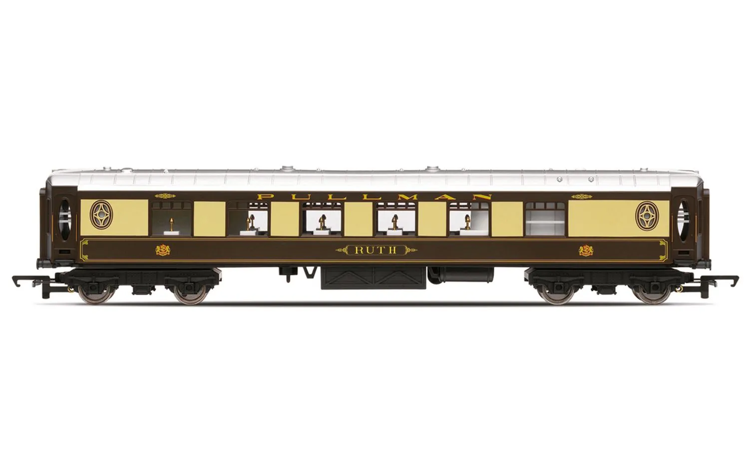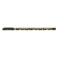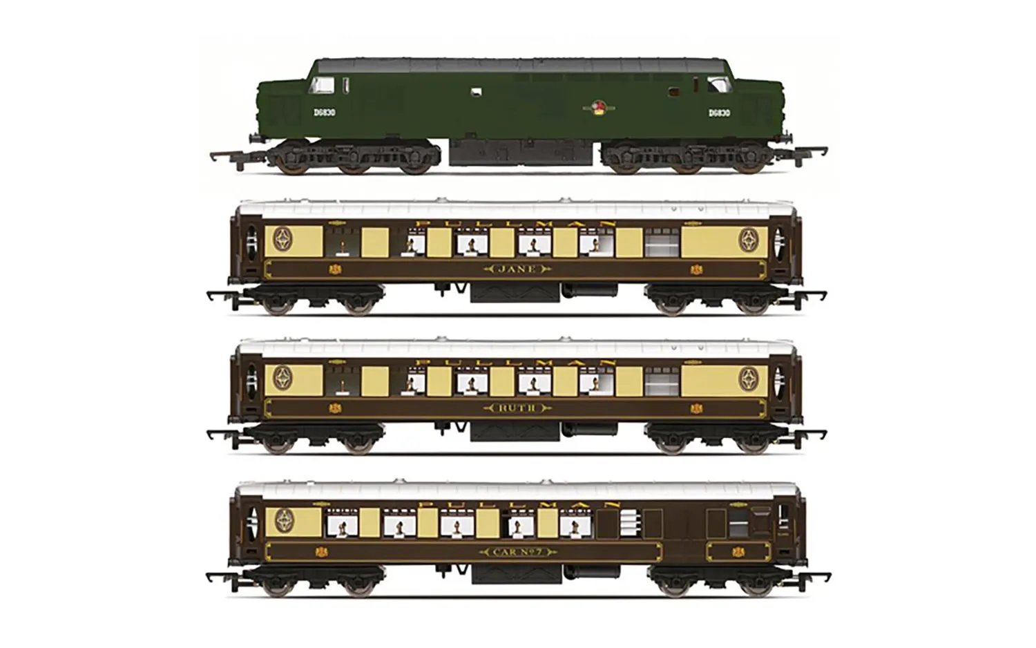 Our ‘Tri-ang Hornby Remembered’ set recreates the nostalgia of the original, using the same artwork on the box lid, and includes the BR green-liveried locomotive with its small yellow warning panels, which were typical of the time, plus Pullman Cars ‘Jane’ and ‘Ruth’, and Pullman brake ‘No.7’.