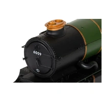 No. 6009 ‘King Charles II’ was constructed in March 1928. After nationalisation in 1948, it was painted in a BR Black livery. ‘Alfloc’ water treatment was fitted in 1954 and a double chimney in May 1956. Withdrawn in September 1962, 6009 was scrapped at Cashmore’s.