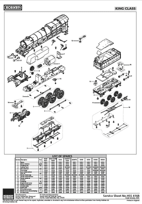 A vibrant GWR green livery is applied on this regal model, suited to the King Class of locomotives, along with its coupled tender. Two etched nameplates of ‘King Charles II’ can be applied to the chassis, just above the wheel. Please be aware that this is not suitable for children. This model is DCC-ready and is compatible with our HM7000 21-pin decoder. The accessory bag contains a vac pipe, a bar coupling, a hook coupling, two cylinder draincocks, a brake rod and a tender brake rod.