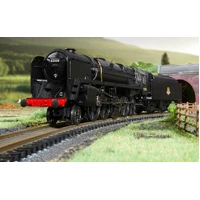 Our sleek, sophisticated Class 9F locomotive is paired with a BR1C type tender. It features a five-pole skew-wound motor, sprung metal buffers and NEM couplings, beautifully replicating Riddles' original design. In the accessories pack you'll find crew figures, brake rods, front steps, vacuum pipes and front NEM coupling assembly. And you can upgrade your locomotive to HM7000 control by adding a 21-pin decoder.
