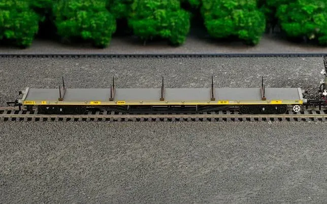 The 65 foot length of the wagon enabled them to easily carry standard 60 foot lengths of track and consists of up to ten of these wagons would be connected to enable the transportation of even longer lengths. Batches of these wagons, totalling 894 examples, would be constructed between 1949 and 1961 with a further batch built in 1983.