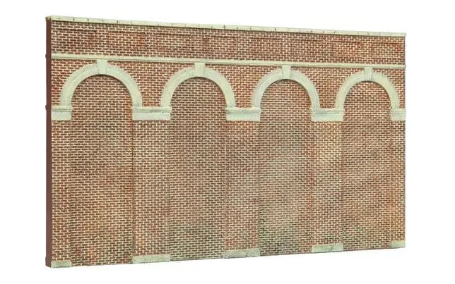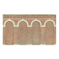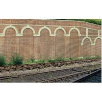 These High Level Arched Retaining Walls add authentic detail to your model railway layout, replicating the classic red brick structures found along railway cuttings and embankments. The pack contains two retaining walls that create realistic depth and dimension to elevated sections of your layout. Perfect for modelling cutting edges or embankment supports, these scenic accessories help achieve authentic landscape engineering features for your railway scene.