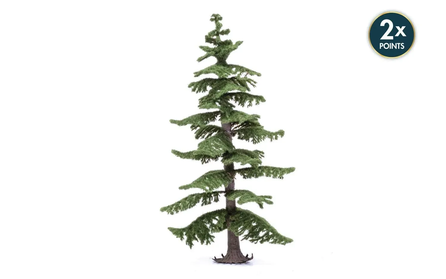 This Large Nordic Fir Tree stands at 14.5cm high and is perfectly scaled for OO gauge layouts. The green foliage of this Nordmann fir makes it an excellent addition to landscape designs, adding depth and visual interest to rural scenes or forested areas. Manufactured by Hornby, this scenery piece is designed to complement existing layout elements while providing scale-appropriate vegetation.